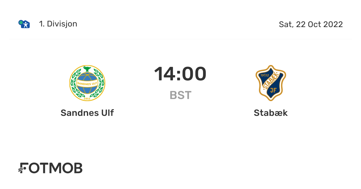 Sandnes Ulf Vs Stabaek 1 Divisjon On Sat Oct 22 2022 13 00 Utc